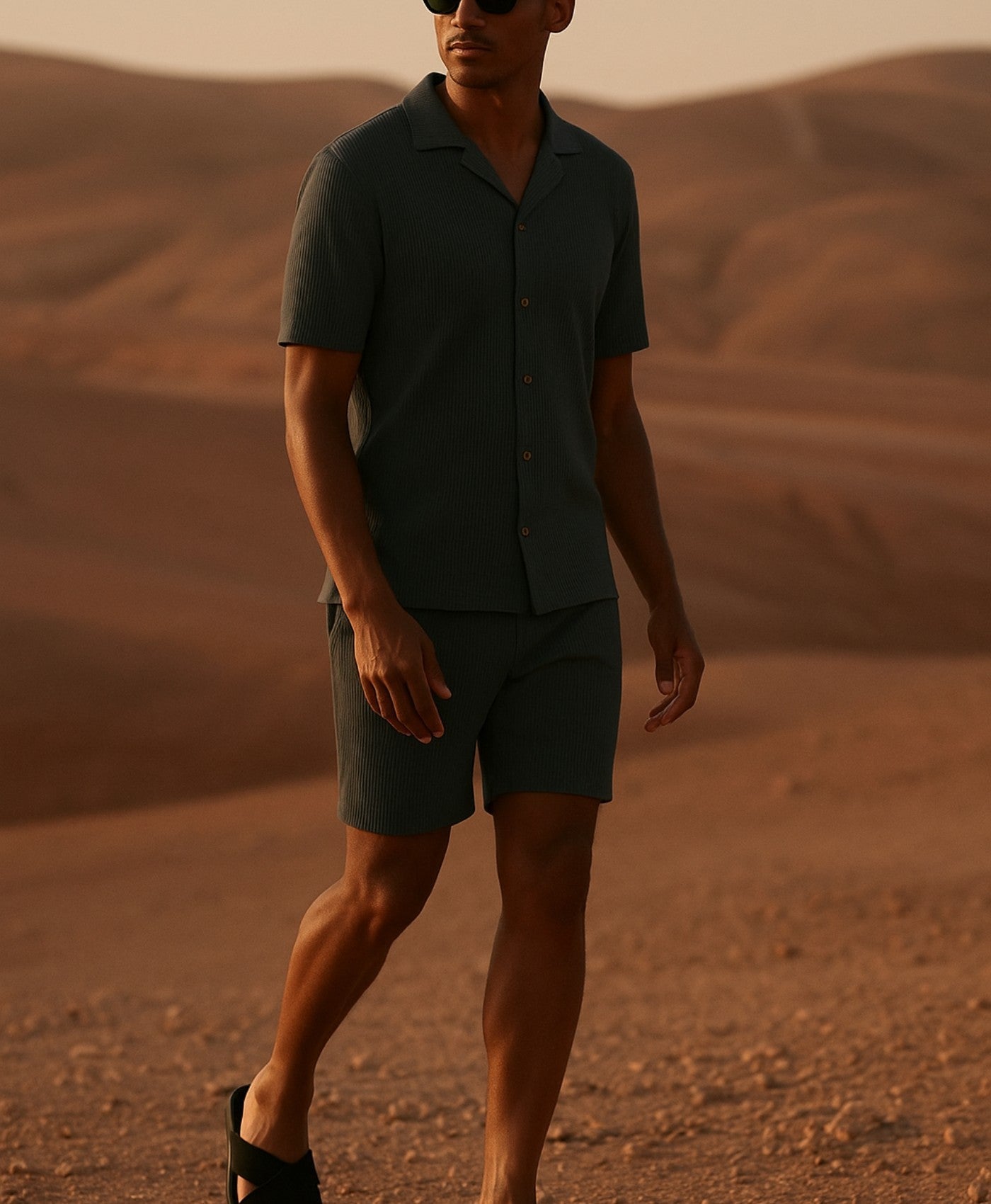 Onze zomerset is gemaakt van een zachte, ademende ribstof en zorgvuldig afgewerkt met subtiele details,  deze set biedt het ultieme zomergevoel — zowel casual als verfijnd. Perfect voor vakanties, zonnige stadsdagen of relaxte avonden op het terras.